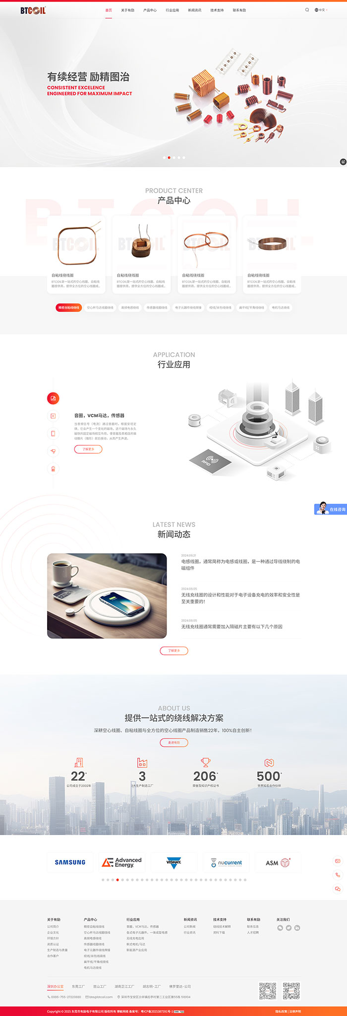 * 提供世界上最細線徑到最粗線徑的線圈繞線解決方案。有勵電子有著更多的服務於全球500強客戶的經驗。同時一直在為完善繞線線圈行業的標準而努力。 * 持續的技術改善和不斷地技術創新 * BTCOIL制造的繞線線圈產品涵蓋微細自粘線、圓線,扁平線及各種漆包線的精密繞線線圈,主要廣泛的應用於電感線圈、變壓器、消費類電子產品配件、汽車電子零件、RFID應用、工業電氣控制、太陽能,電機馬達等行業或領域。