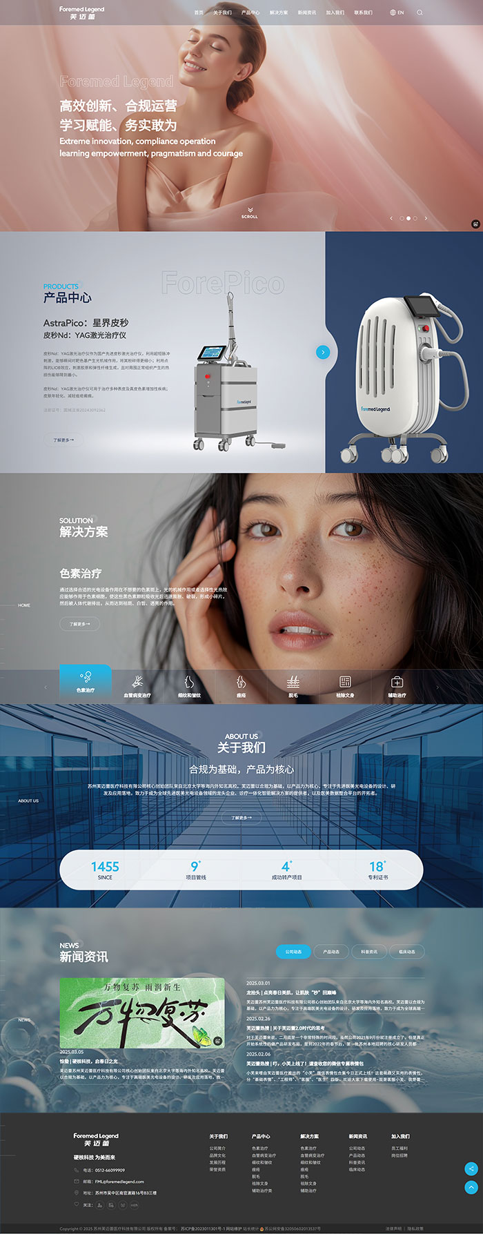 通過攻堅一系列底層的關鍵技術,芙邁蕾現已自主研發出皮秒激光治療儀、長脈沖激光治療儀、強脈沖光治療儀、光聲成像皮膚檢測設備和冷空氣治療儀等多款先進醫療設備,并持續深耕產品核心技術的研發,用更高效的技術解決方案,造福廣大的求美者。